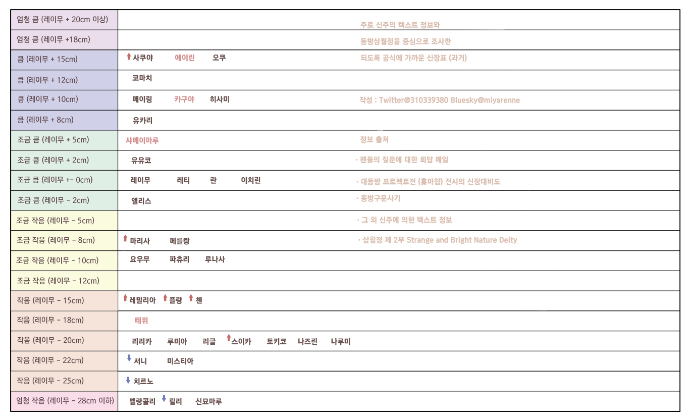 라는 작화 담당의 히라사카 선생님의 발언이 있었기에, 「동방삼월정」에서의 신장 차를 메인 자료로 했습니다.