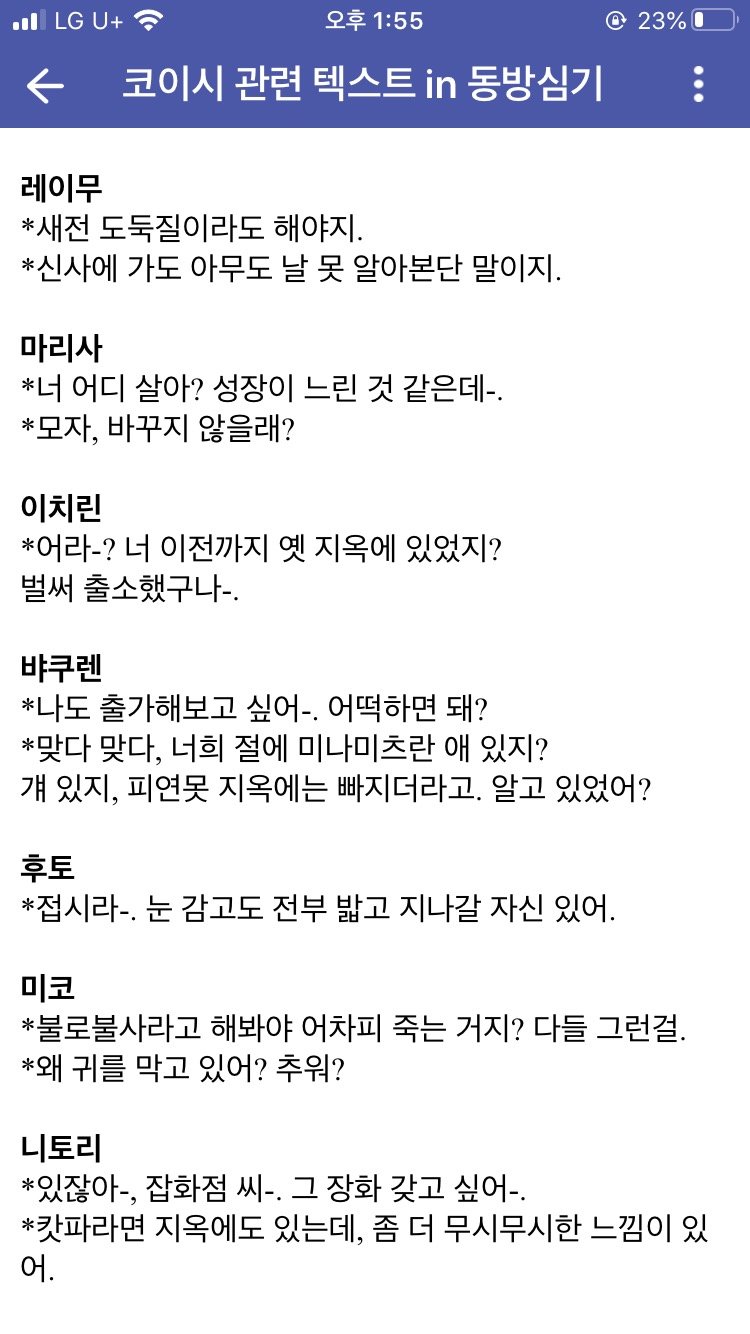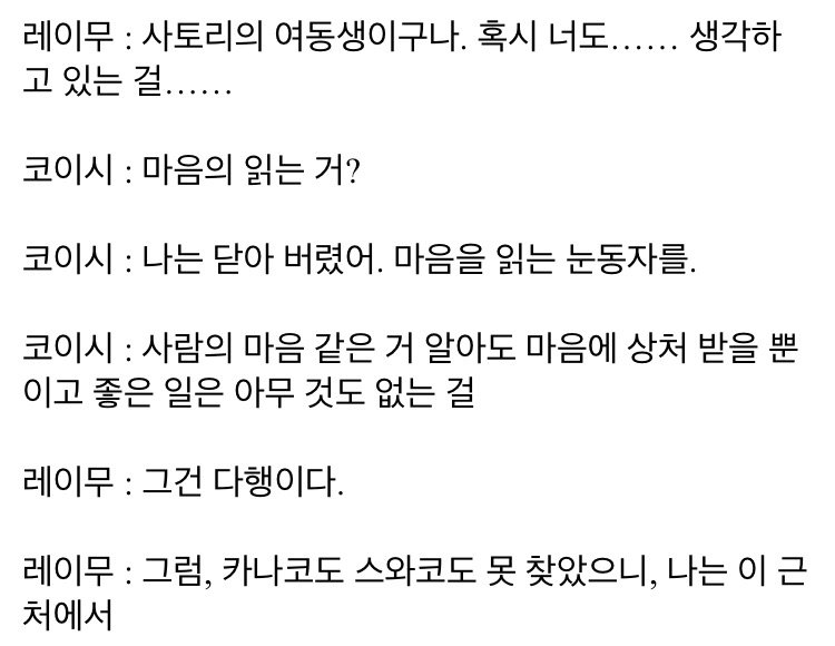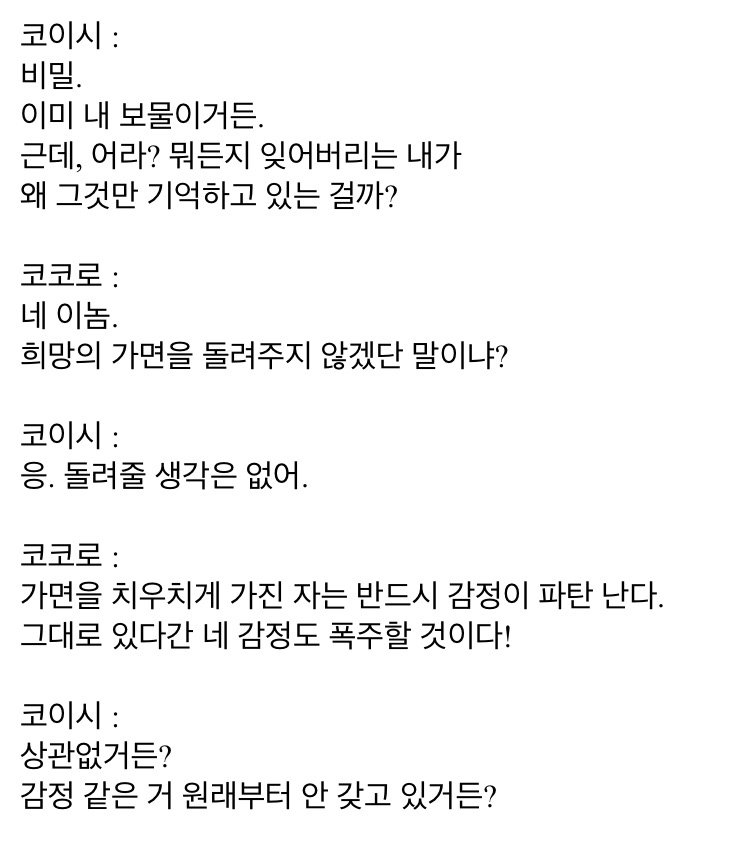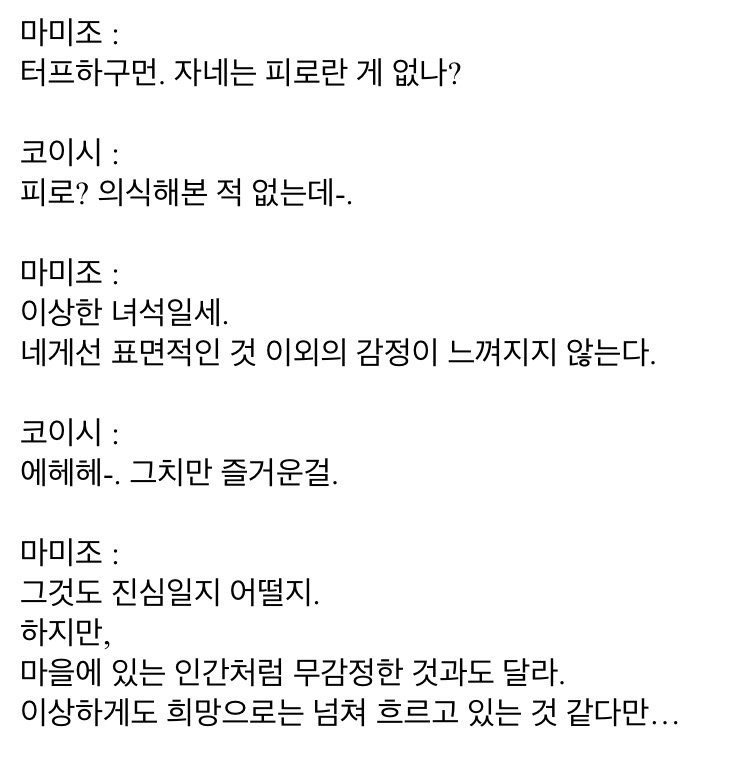 ~~싶다는 말투는 감정적인데, 정작 코이시는 감정이 없다.